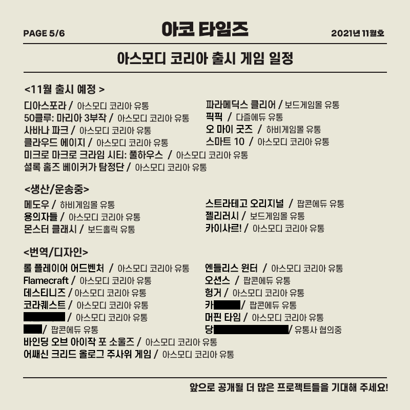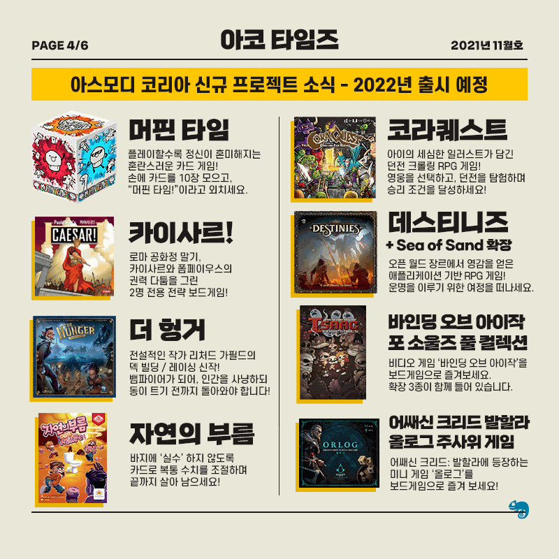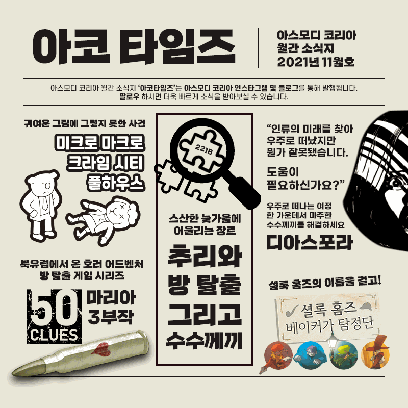 지난 호 퀴즈의 정답과 2022년 신작에 대한 더욱 자세한 소식은 아스모디 코리아 블로그에서 확인하실 수 있습니다.