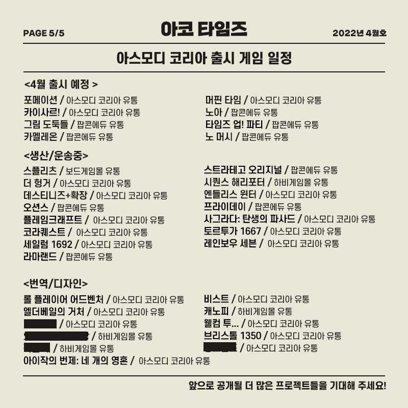 4월 출시 예정 게임 소개 및 진행 중인 프로젝트 소개