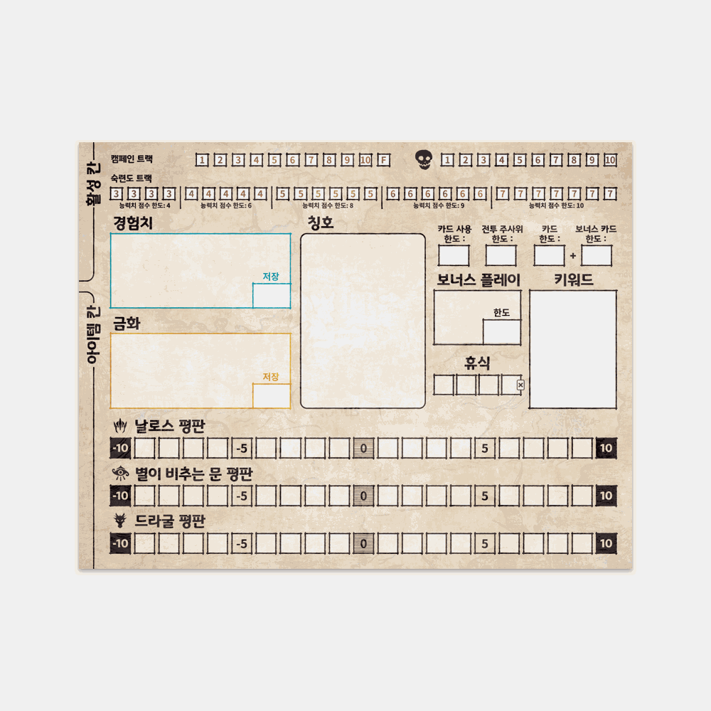 롤플레이어 어드벤처 캐릭터 속지